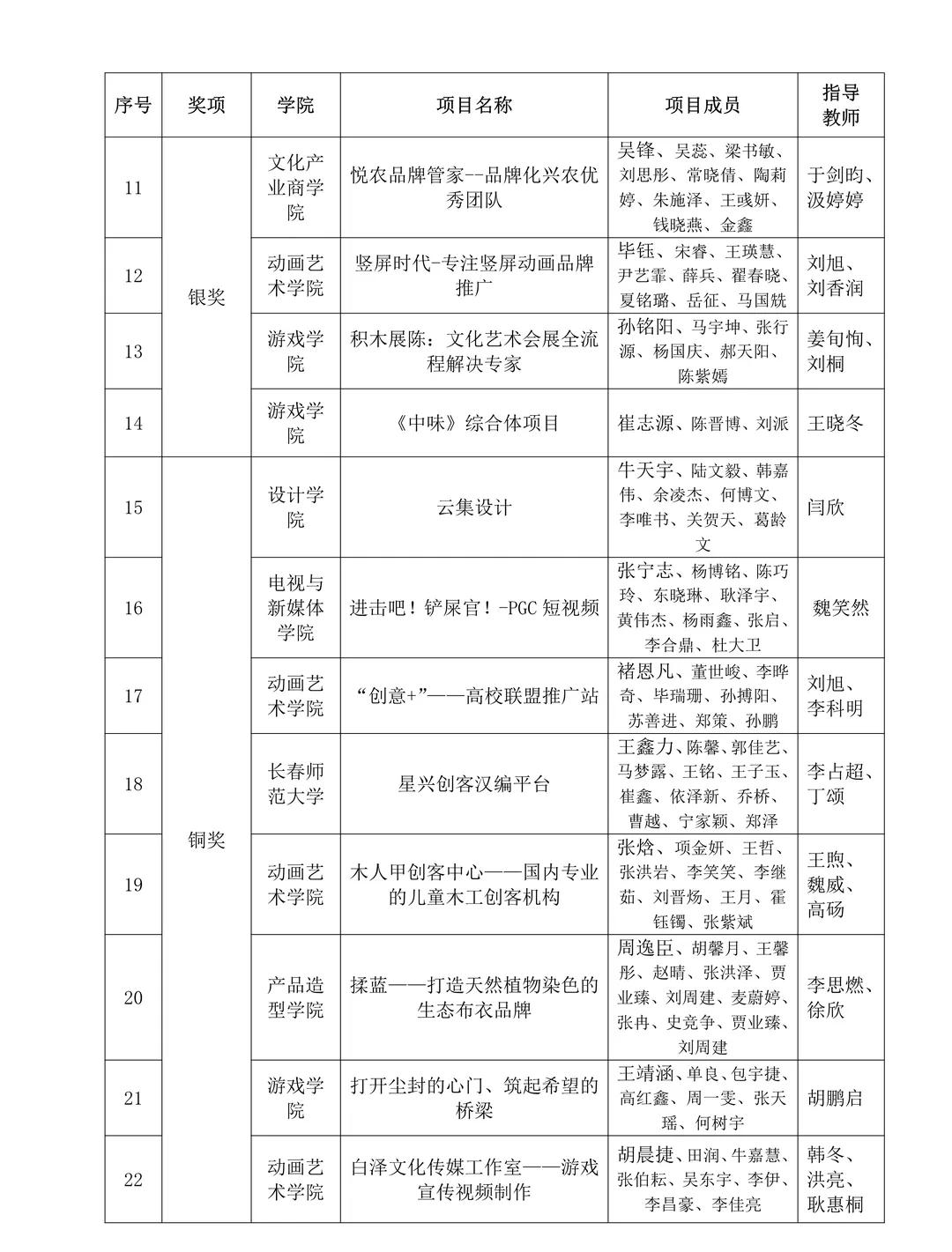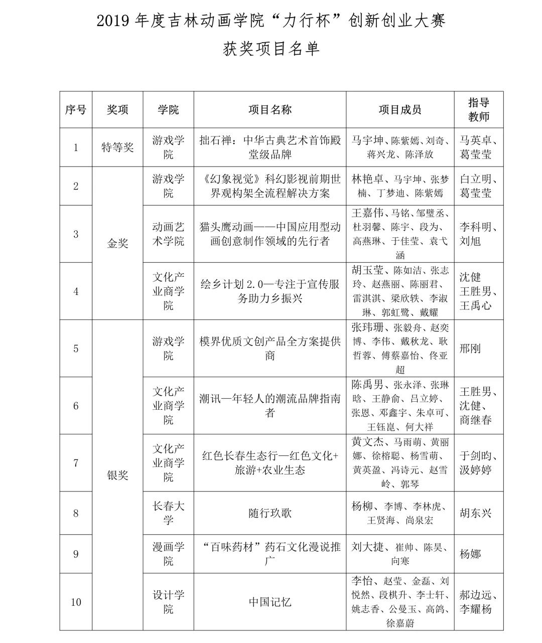 经过一天激烈的角逐,评审专家组评分合议决定:《拙石禅-中华古典艺术首饰殿堂级品牌》获得特等奖;《幻象视觉-科幻影视前期世界观构架全流程解决方案》等3个项目获得金奖;《模界优质文创产品全方案提供商》等10个项目获得银奖;《“创意+”——高校联盟推广站》等16个项目获得铜奖。游戏学院、文化产业商学院、动画艺术学院分获最佳组织奖。同时,李科明等26名指导教师获得大赛优秀指导教师奖。