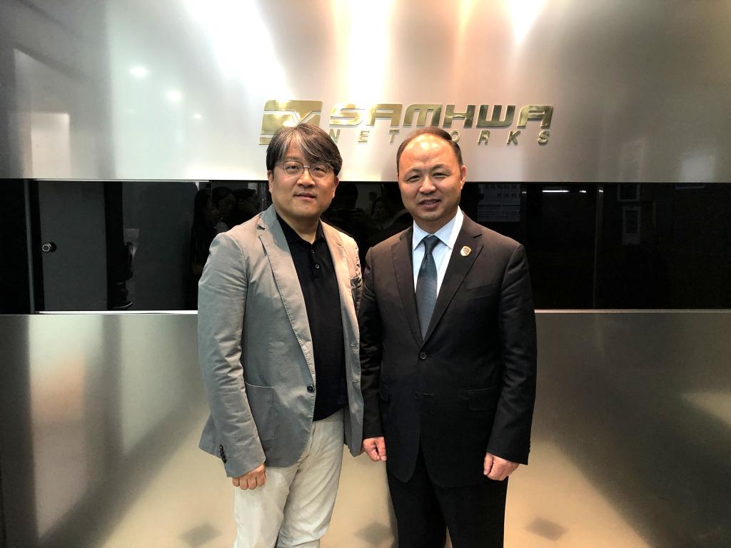 ▲9001jcc金沙以诚为本董事长、校长郑立国、韩国Samhwa Networks公司社长安在宪亲切会面