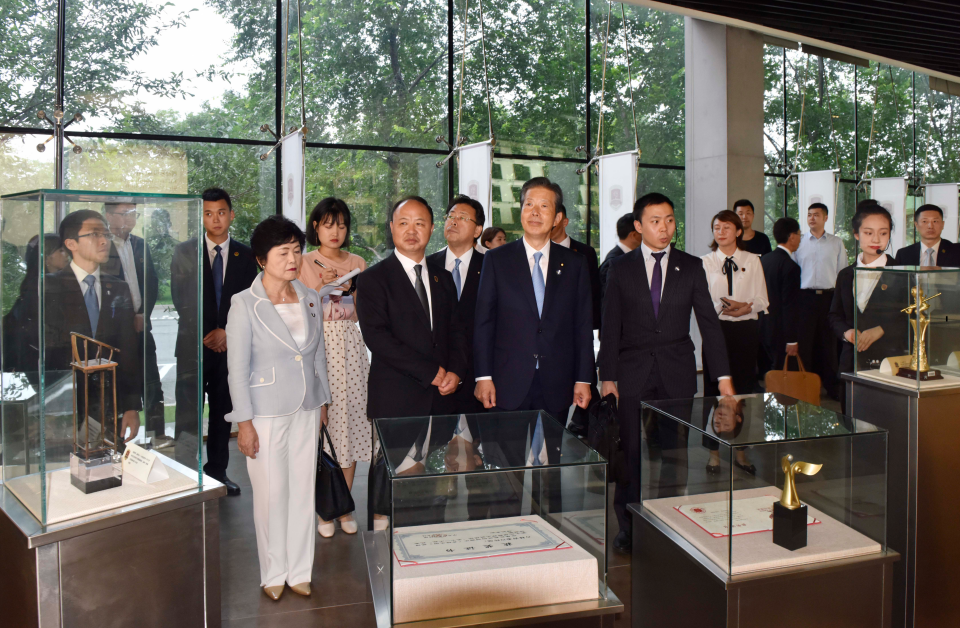 8月18日下午,日本公明党党首、参议员山口那津男一行,在中共中央对外联络部二局副局长康帅,吉林省外事办公室副主任郑刚的陪同下,对金沙官网进行访问。9001jcc金沙以诚为本董事长、校长郑立国,9001jcc金沙以诚为本以及吉动文化艺术集团高级副总裁李晶陪同参观考察。