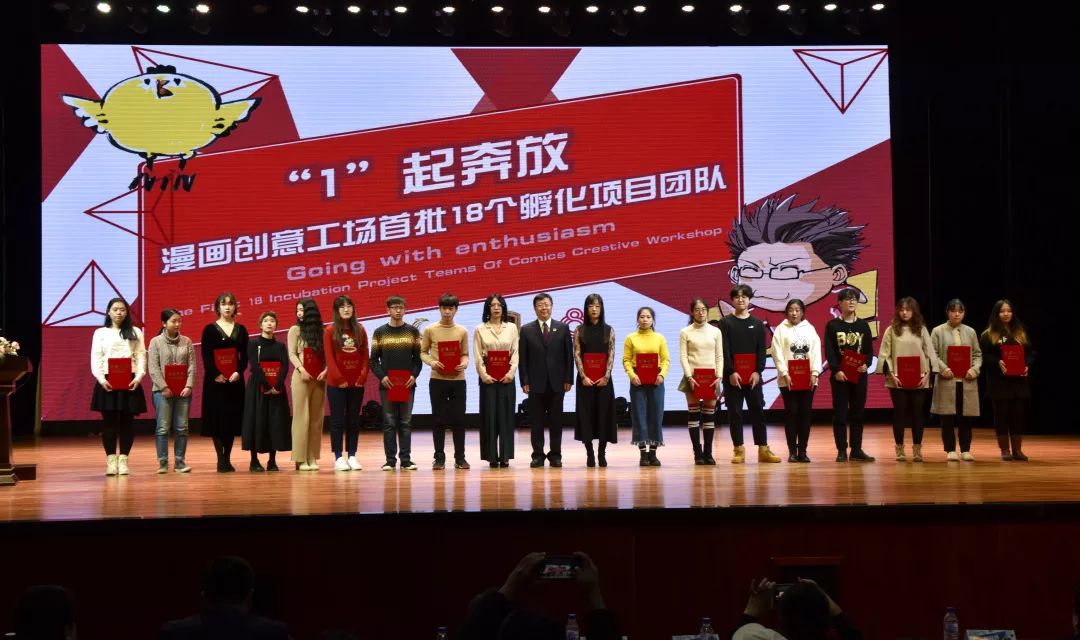 9001jcc金沙以诚为本副校长李春义为漫画创意工场首批孵化项目团队颁发荣誉证书