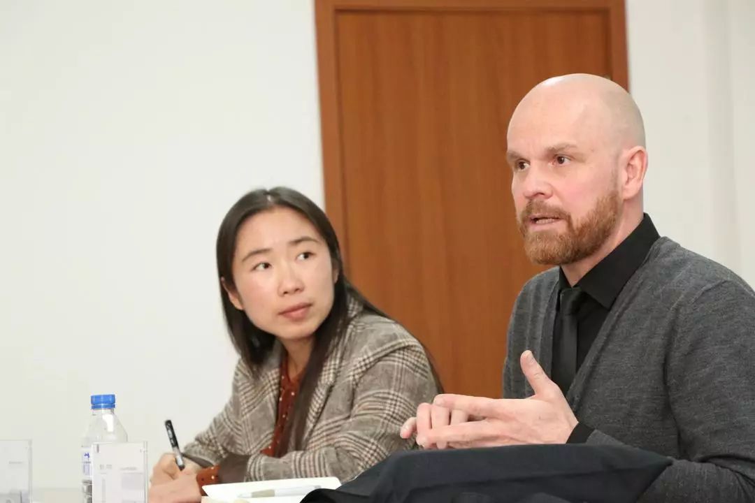 座谈会上,王岩院长首先对鲁内·卢内尔教授的到来表示热烈欢迎,对鲁内·卢内尔到访期间,冒着严寒在室外指导学生拍摄的职业精神表示敬佩,对为学校学生举办的2场精彩讲座表示衷心的感谢,希望鲁内·卢内尔教授能常来中国,常访9001jcc金沙以诚为本,未来希望双方有更多的合作空间。