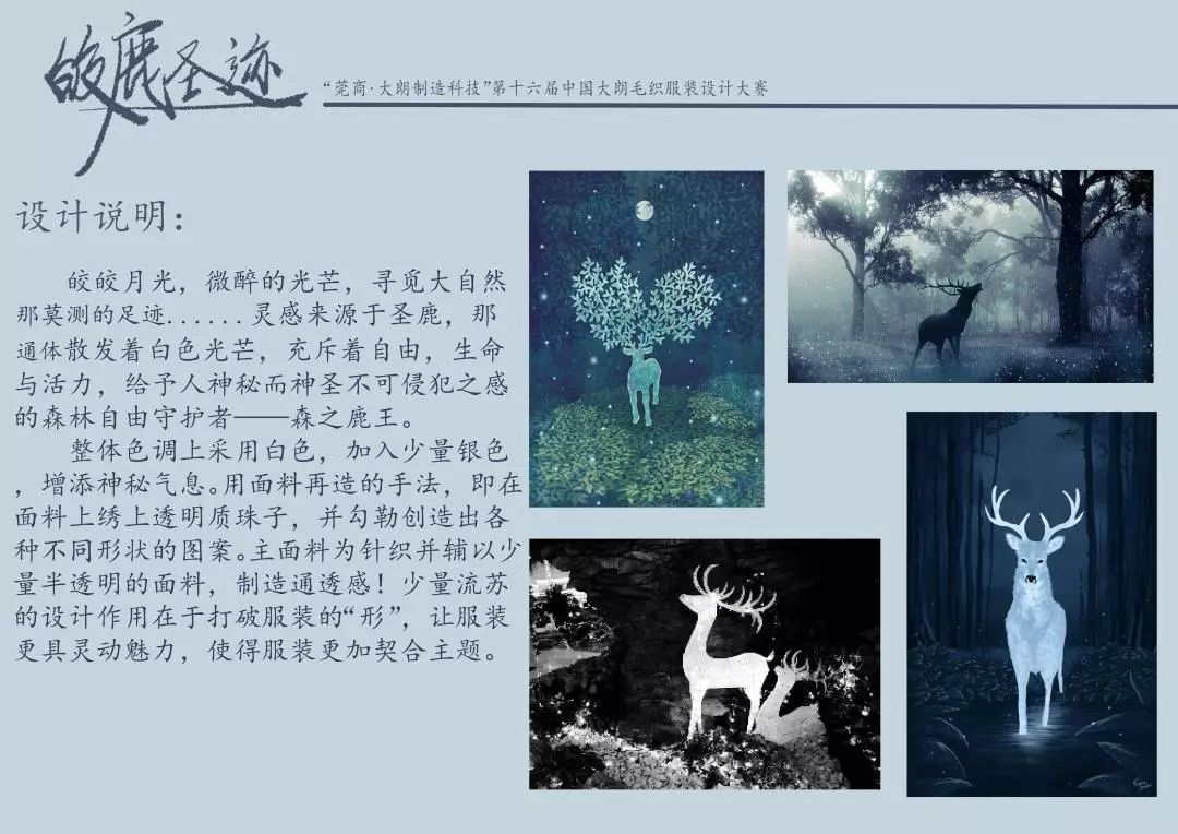 近日,由影视造型学院2015级个人形象、影视服装工作室教师郭琦、李辰指导的学生李银霞,作品《皎鹿圣迹》成功入围第十六届中国(大朗)毛织服装设计大赛。