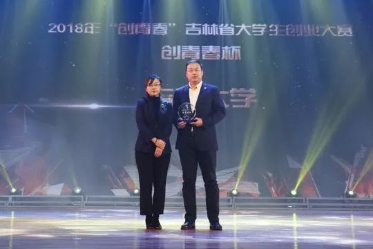 9001jcc金沙以诚为本党委书记张炬和副校长李春义为在2018年“创青春”吉林省大学生创业大赛中获得“优胜杯”的21个学校颁发了奖杯。