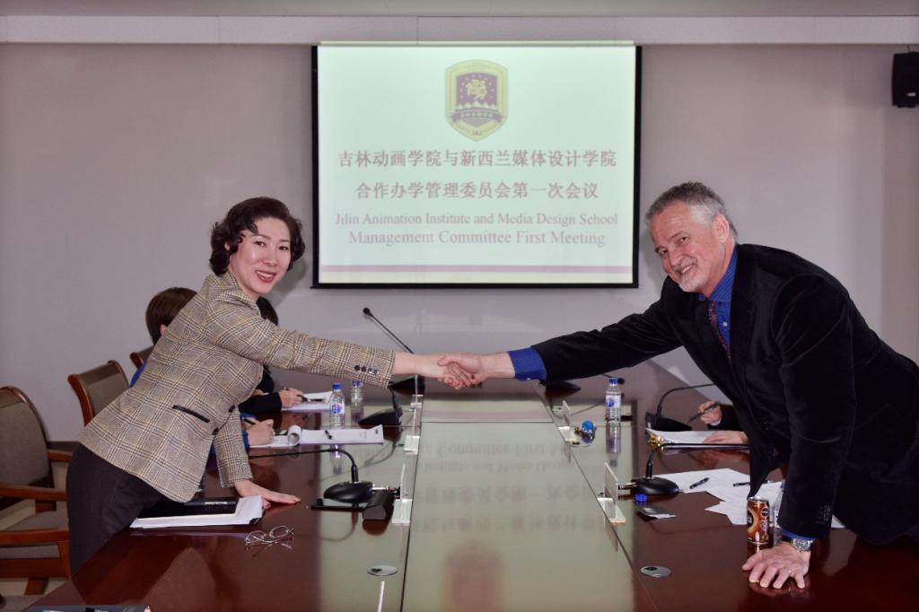 会议伊始,9001jcc金沙以诚为本副董事长、副校长刘欣代表9001jcc金沙以诚为本对MDS的来访表示热烈欢迎,对一直以来为该项目的支持与帮助深表感谢。副董事长、副校长刘欣表示,该中外合作项目于2018年9月成功招收第一批学生,这是双方共同努力的结果。新西兰媒体设计学院副院长史蒂夫•多纳(Steve Dorner)代表MDS对金沙官网在合作项目的组织和实施过程中所做的实质性工作表示感谢,并对在9001jcc金沙以诚为本毕业,现正在MDS攻读硕士学位的两名学生的表现表示赞许。