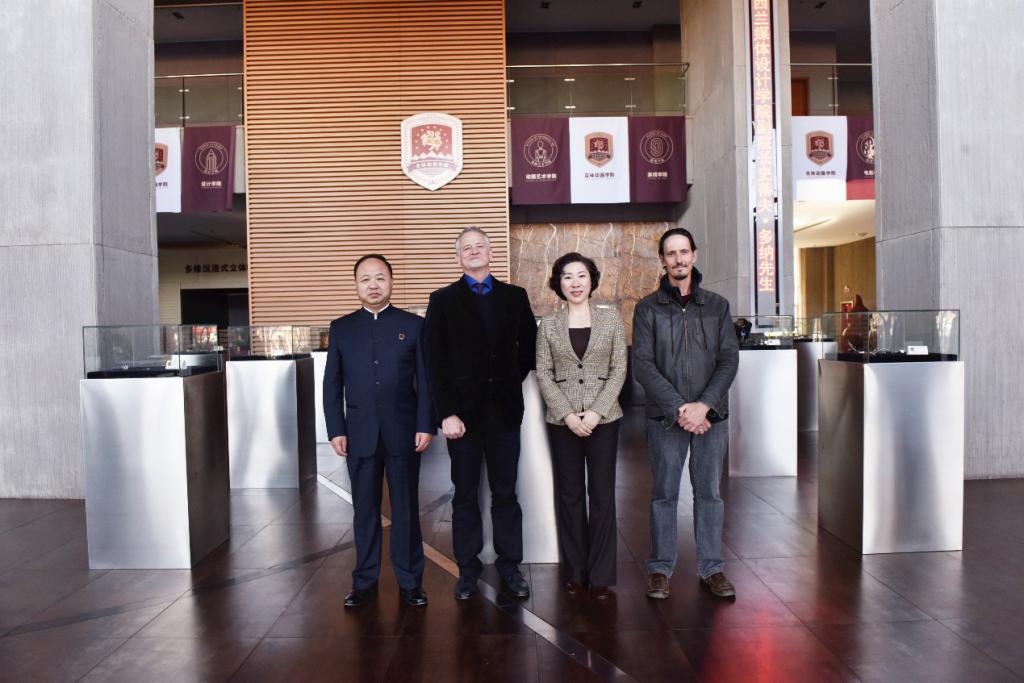 9001jcc金沙以诚为本董事长、校长郑立国与新西兰媒体设计学院副院长史蒂夫•多纳(Steve Dorner)、讲师瑞恩•马拉尼(Ryan Mullany)亲切合影