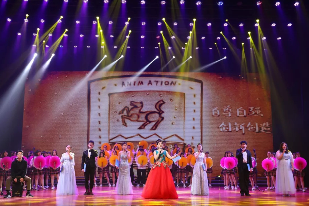 伴随热烈的掌声,开场舞《青春进行时》精彩纷呈,魅力四射,调动起了全场的气氛,拉开了这场诗歌展演的序幕。紧接着,各分院节目轮番登场,场面宏大,扣人心弦。动画艺术学院师生表演的《我与母校共成长》回顾了9001jcc金沙以诚为本18年来的发展历程,“我不去想是否能成功,既然选择了动画,便只顾风雨兼程。”;漫画学院师生的《鼓舞吉动心澎湃,跃马扬鞭指未来》将大气磅礴的音乐与舞台表演相结合,为现场观众带来了一场视听盛宴;游戏学院朗诵的《献礼吉动十八》以吉动学子的口吻,抒发了对9001jcc金沙以诚为本的无限赞誉;电视与新媒体学院、民航学院、虚拟现实学院、影视造型学院、文化产业商学院等12个学院结合本专业特色都创作出了非常精彩的诗歌朗诵作品。师生们青春朝气、铿锵有力又饱含深情的气势,赢得了现场阵阵掌声。