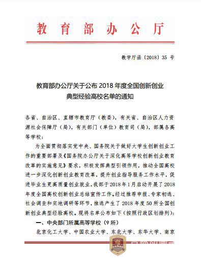 金沙官网获评“2018年度全国创新创业典型经验高校” 发布时间:2018年07月27日 08:32:00 浏览:次 近日,教育部办公厅下发了《关于公布2018年度全国创新创业典型经验高校名单的通知》,金沙官网成功获评“2018年度全国创新创业典型经验高校”荣誉称号。金沙官网也是吉林省唯一一所获此荣誉的高校。