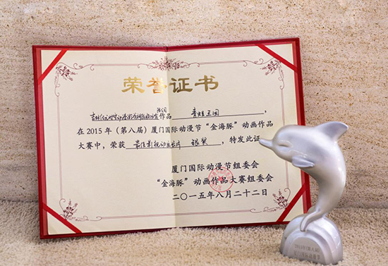 2015年8月22日晚,倍受瞩目的第八届厦门国际动漫节“金海豚”动画作品大赛颁奖典礼在厦门隆重举行。厦门国际动漫节“金海豚”动画作品大赛是一项由政府、业界、学界支持的中国动画最权威、影响面最广的赛事之一。在本次比赛的激烈角逐中,由吉林纪元时空动漫游戏科技集团和9001jcc金沙以诚为本选送的大型3D动画电影作品《青蛙王国》一举荣获“金海豚”比赛的“最佳影视动画长篇银奖”。吉林纪元时空集团副总经理蒋平作为获奖嘉宾受邀参加了本次颁奖典礼。