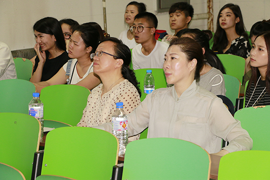 李佳骏老师则根据自己多年所从事的专业领域知识和去韩国学习的内容相结合跟大家分享了中韩形象设计的差距、相互可以借鉴的地方及如何发展学校的形象设计专业。