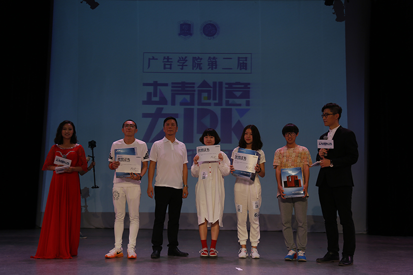 决赛现场,8组选手蓄势待发,精彩提案。2013级“南征北战”队统一穿着显眼的红色队服,他们抽到的命题是凯迪拉克新品发布会策划案。这组选手展示的创意核心概念是“另一个自己”,每个人梦想中总会有一个未来自己的样子,他们的提案就带你触碰未来的自己,以凯迪拉克的新车作为给自己的奖励。最让现场评委、观众震撼的是一组大一的“FN队”,他们抽到的命题是YOU+国际青年社区推广策划案。这组大一的团队充满着激情,他们不会做策略的执行,团队中的小伙伴用了十余天的时间学会了大气的PPT制作,他们奇思妙想,创造出符合年青人口味的“创意者们的出逃计划”策略活动。当评委问到“你们练习了多少次完成了这么精彩的团队提案”时,他们说:“只要有时间,就一起交流修改,应该是第N次了。”这份对专业的执着与热爱感动了评委,感染了现场的同学们,最终这组大一的团队,获本场最佳人气奖,获第二届广告杰青创意大PK一等奖。