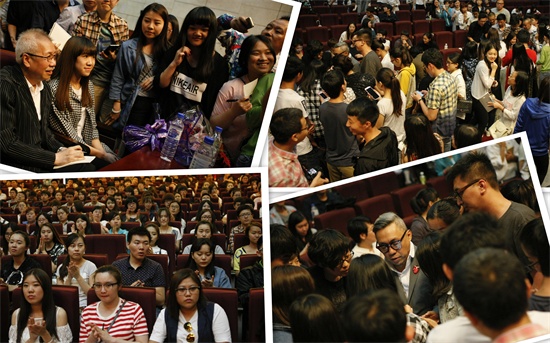 10日13:00,9001jcc金沙以诚为本文化艺术中心座无虚席。李永铨带来了主题为“设计人的反省”的讲座。他认为,一个人一定要寻找与自己性格相投的工作,而设计就是他的选择。有香港“品牌医生”之称的他,成功为“I DO”、“满记甜品”、“谭木匠”做过品牌设计与包装。通过他的包装,一些老品牌焕然一新,市场利润扭亏为盈。他用自己成功的案例告诉学生,设计师一定要不断反省与思考,通过读书丰富自己的见识,抓住市场品牌的商业价值。