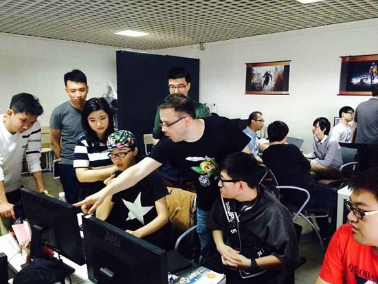 在欣赏工作室中学生们优秀作品时,依欧阿尼斯·莫塔佛格罗极为惊讶,对金沙官网学生在校期间就有很好的成绩,表示赞许。他还对学生的作品一一评点,使学生们在原有的基础上,完善了游戏的画面风格和色彩的冷暖关系,加强了场景渲染的气氛,突出了人物的性格,提升了作品的艺术水平,使学生们表示获益匪浅,极为高兴。