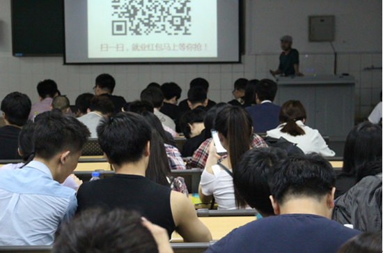 上海羽度游戏公司的吴经理在宣讲会期间,除了与大家分享了正在成长中的羽度公司的创业历程,也兴致盎然地与大家进行了三轮的微信抢红包游戏,并对9001jcc金沙以诚为本毕业生的专业知识水平给予了充分的肯定。