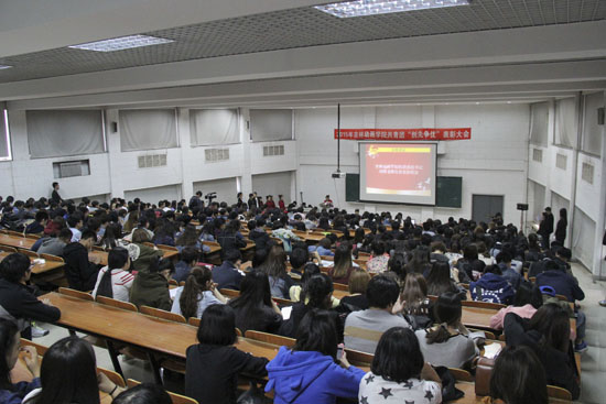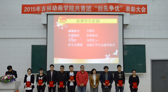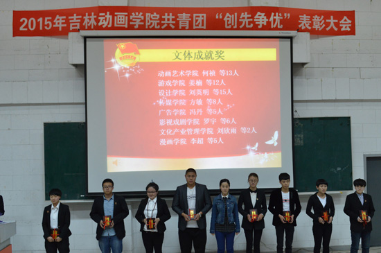 校团委副书记刘博首先宣读了2014年度长春市“创先争优”表彰决定和2014年共青团“创先争优”表彰决定。