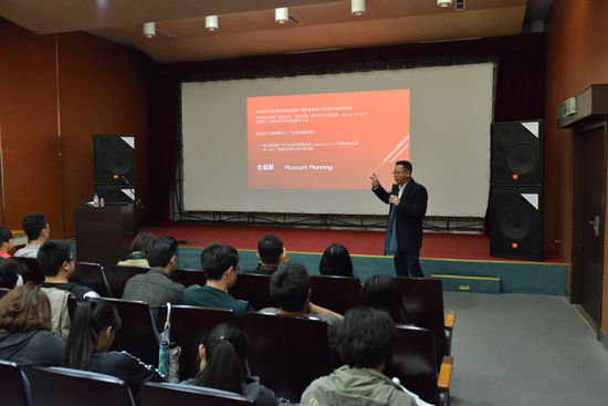 以就业市场为导向,为有效提升学生职业体验感,5月11日,在图书馆四楼报告厅,金沙官网广告学院院长胡镜泉面向大三年级学生,作了《4A广告公司客服与提案的实战分享》主题讲座。