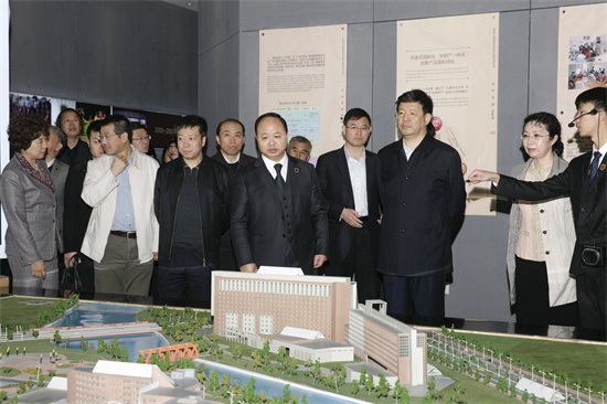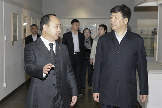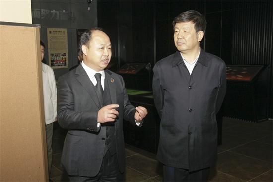 董事长郑立国向省政协副主席支建华介绍国际动漫游戏博物馆