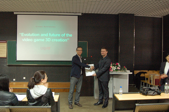游戏学院美术基础教研室主任袁小东老师,代表金沙官网为艾赫文·戴维斯颁发客座教授证书,希望日后艾赫文·戴维斯能够为金沙官网师生提供更多的精彩讲座,两校能有更多的合作机会。