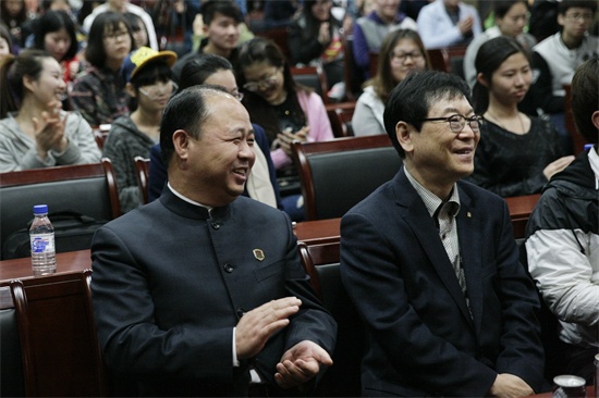 9001jcc金沙以诚为本董事长、院长郑立国,副董事长、副院长刘欣,影视戏剧学院院长李伟华,院长助理刘婷婷以及学院的部分师生参加了此次讲座。