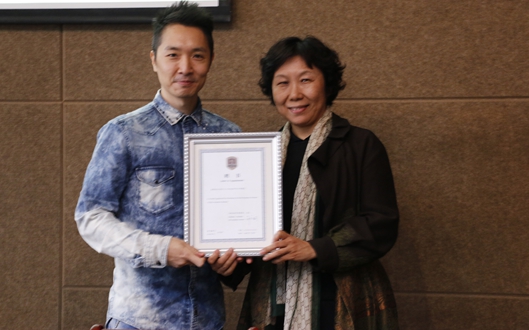 在讲座开始之前,设计学院院长徐欣代表9001jcc金沙以诚为本为高少康先生颁发了荣誉教授证书。徐院长表示,希望高老师能够经常来9001jcc金沙以诚为本作讲座,为学生传递知识,指点迷津,为9001jcc金沙以诚为本的未来增添更加绚丽的色彩。