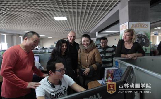 3月6日,代表团首先在工作人员的带领下参观了禹硕影视传媒股份有限公司。参观后芭芭拉·史蒂芬一边认真了解生产情况,一边兴奋地说:“你们有一个十分优秀的团队,工作模式也与我们很相似。这就是我们可以展开良好合作的原因。”随后,在禹硕影视制片人兼翻译刘蕾、国际合作与交流中心干事郝妍的陪同下,代表团一行三人参观了我院的校史馆与博物馆。在观看了我院的宣传片与4D电影《青蛙运动会》后,对学院的发展和我院所拥有的动画技术印象深刻。希望我们尽快展开深入合作。