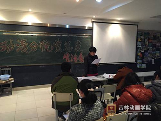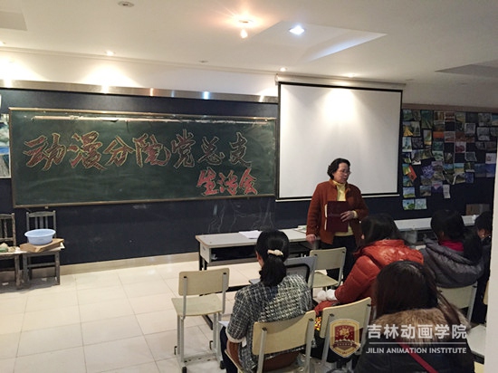 动漫分院党总支书记王金英、学生党支部书记司维、教工党支部书记高冰及分院全体党员参加了此次会议。