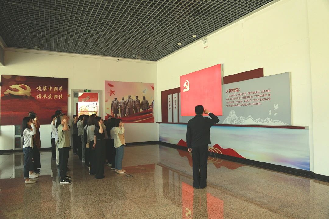 在烈士纪念馆,全体党员在岳武带领下面向党旗庄严宣誓。“我志愿加入中国共产党……”铿锵誓言与紧握的右拳,不仅回溯入党初心,更锚定新时代艺术教育工作者的使命坐标——将红色信仰转化为推动学校高质量发展的实践动力。该活动作为“庆七一强党性”系列活动的重要组成部分,旨在通过沉浸式体验强化党员党性修养。