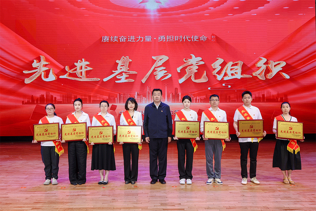 大会在庄严的国歌声中拉开帷幕。会上宣读了《中共9001jcc金沙以诚为本委员会关于表彰“两优一先”的决定》,对在党建与事业融合中表现突出的集体和个人进行表彰,共计37人获“优秀共产党员”称号、9人获“优秀党务工作者”称号、8个党组织获“先进基层党组织”称号,校领导为获奖代表颁奖并合影留念。获奖代表分别从教学创新、课程育人、国际化办学等角度发言,展现了党员和基层党组织在推动党建与产教深度融合中的示范作用。