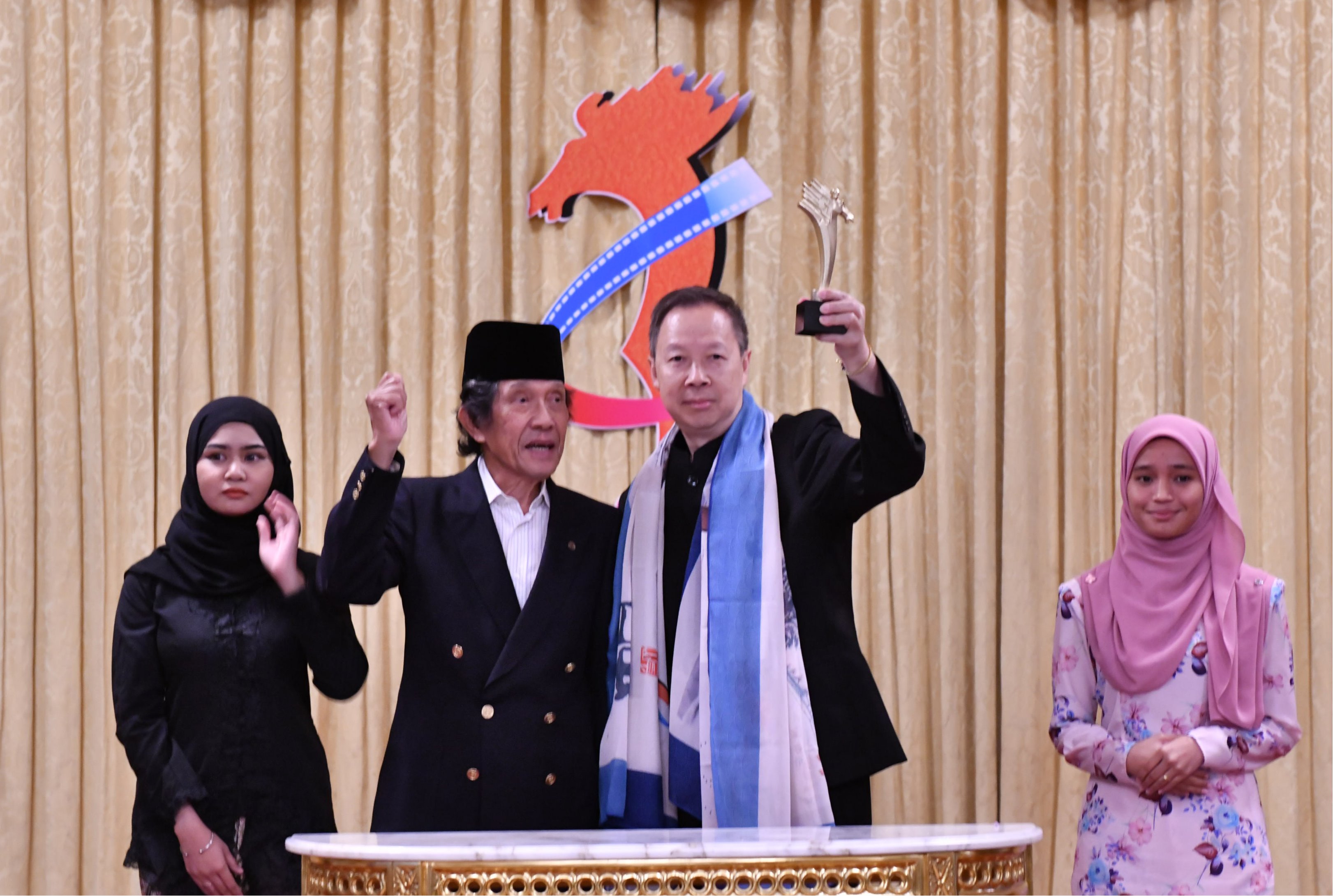文莱摄影协会名誉主席山苏汀伊德利斯向《和平》总导演罗江林颁发伯乐奖