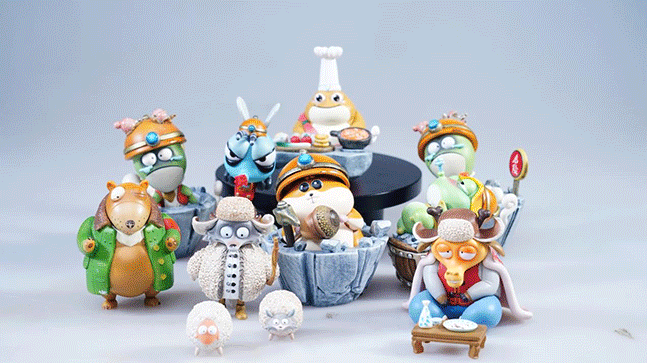 《东北神兽-“兽揽人心”》系列盲盒以东北地区的神兽传说为灵感源泉,巧妙结合东北民俗风情,通过风趣幽默的创意设计,将传统动物形象赋予拟人化的特质和情感,使它们更加萌动可爱。盲盒设计巧妙融入东北特色元素,如色彩斑斓的东北大花袄、古朴的洋井、温馨的炕桌以及冬季特有的冰钓场景等,不仅展现了东北人民的风俗习惯和地域文化,也让这些神兽形象更加鲜活、接地气,深受参观者喜爱。