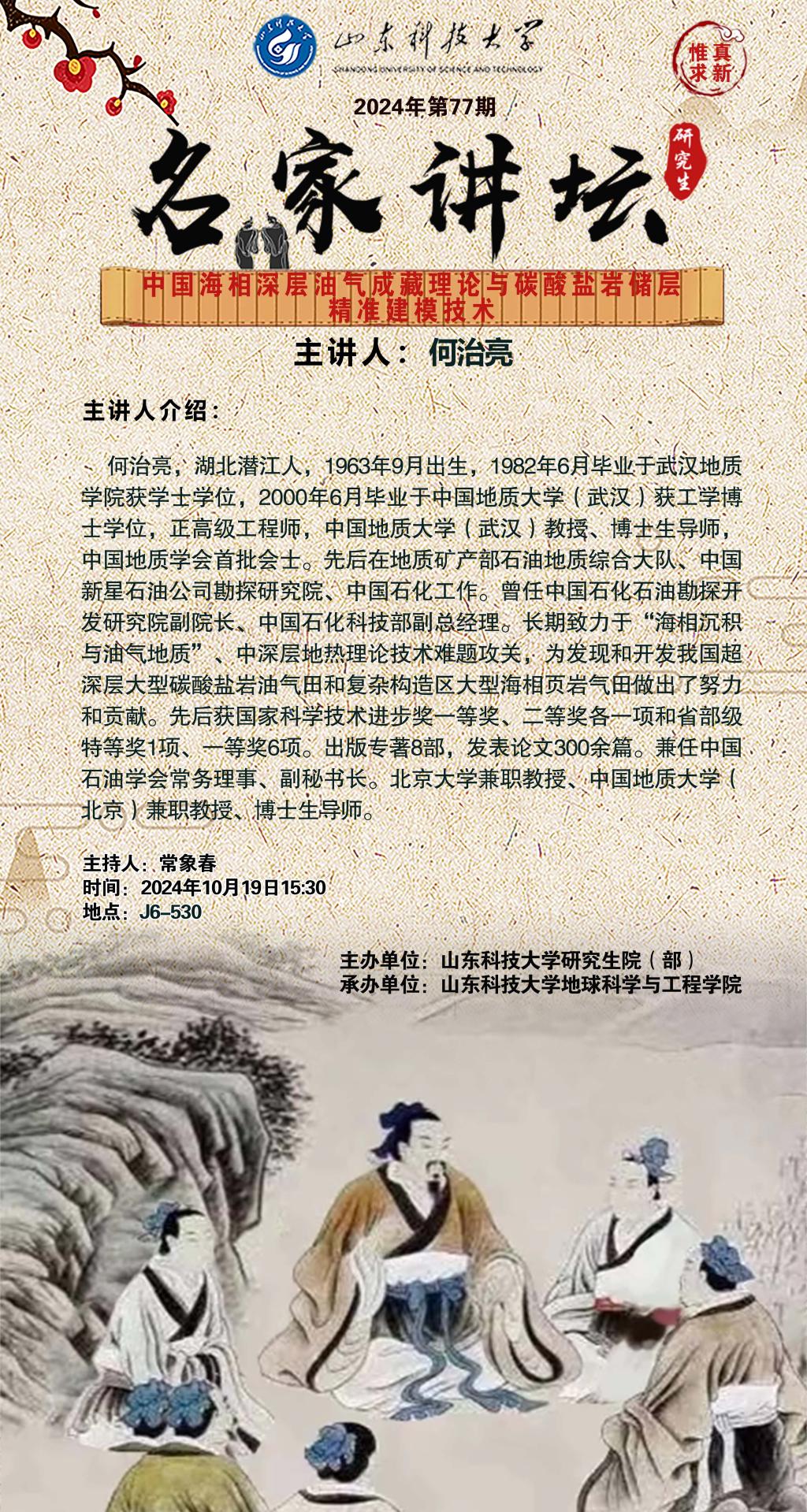 “名家讲坛”2024年第77期:中国海相深层油气成藏理论与碳酸盐岩储层精准建模技术(总971期)